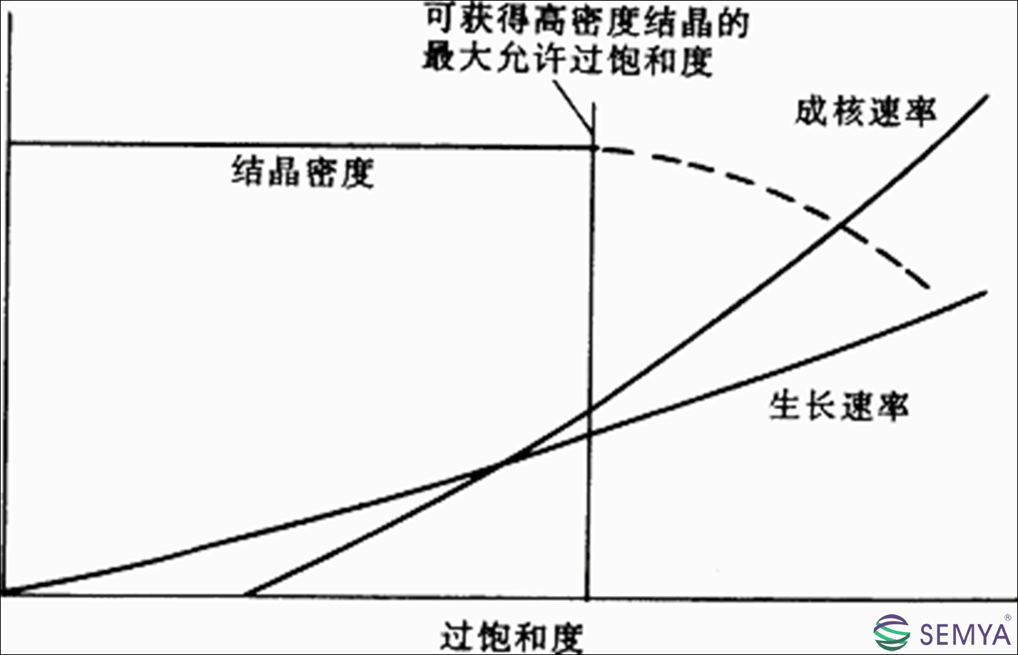 1.過飽和度 增大溶液過飽和度可提高成核速率和生長速率,有利于提高結晶生產能力。
